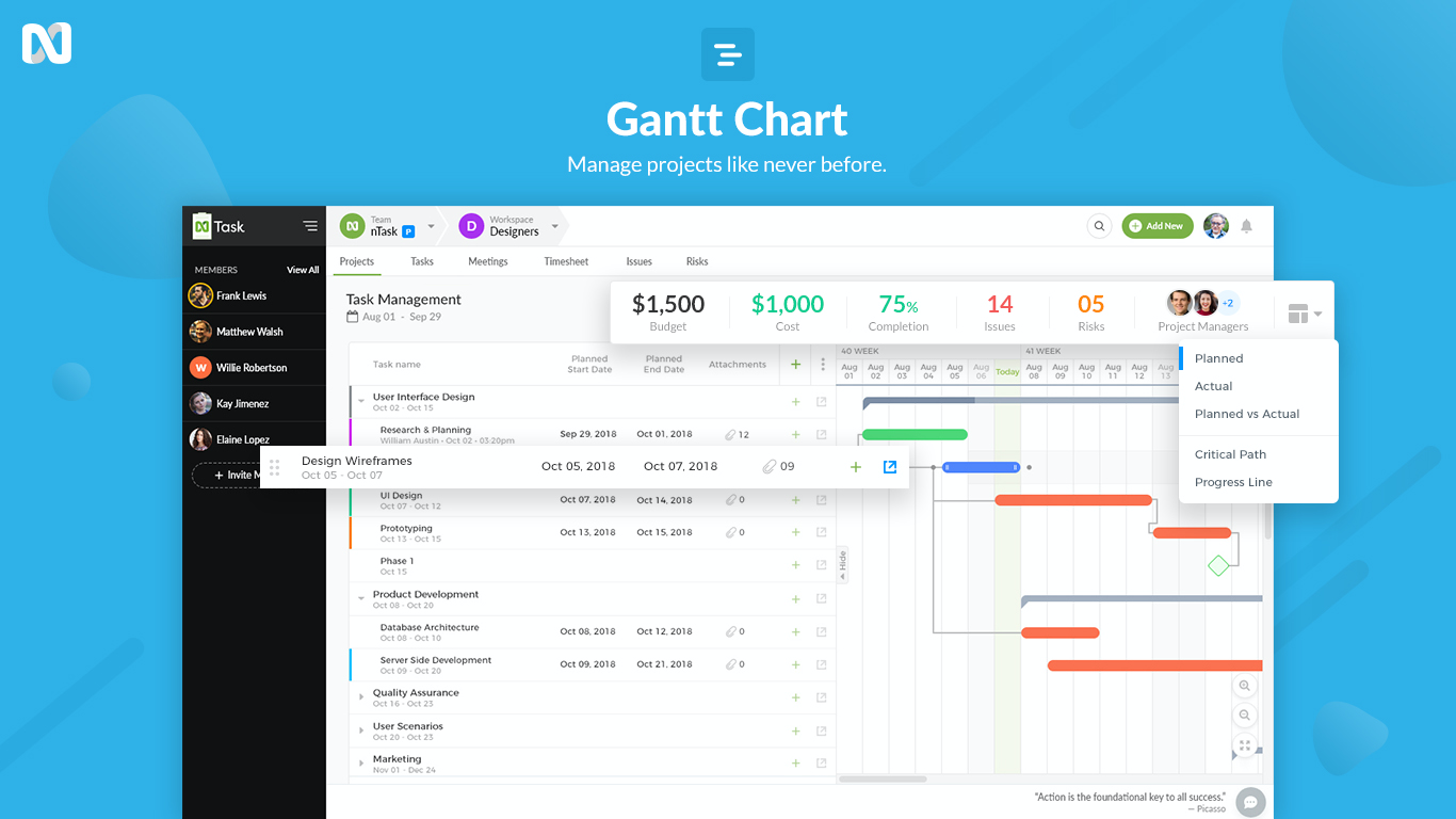 Ntask manager is a workflow management tool created by ntask and designed to increase project productivity and aid team collaboration.